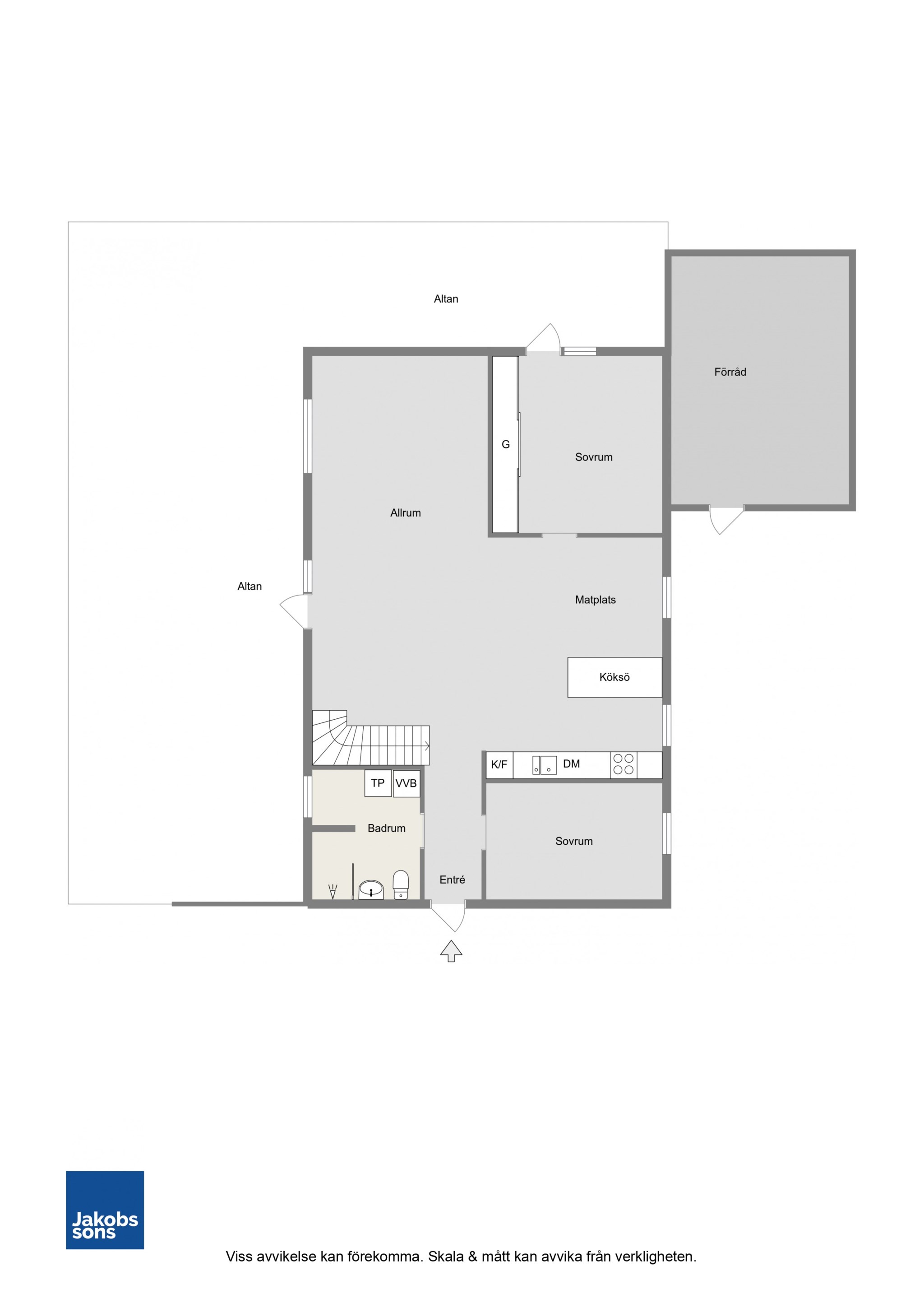 Golv: Våtrumsmatta. Väggar: Målade, våtrumsmatta i dusch. Utrustning: Toalett, tvättställ, dusch, tvättmaskin, torktumlare och VVB.