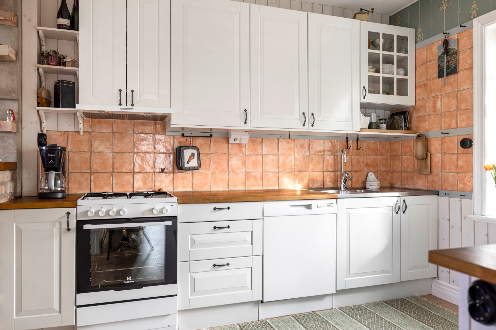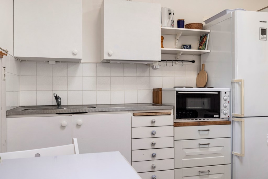 Spis (gas), fläkt, diskmaskin, kyl och frys.