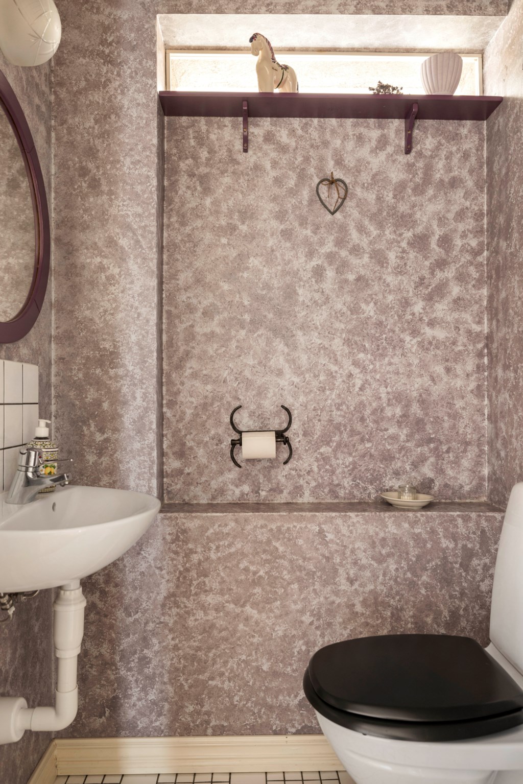 Golv: Klinker. Toalett, tvättställ och elektriskt golvvärme.
