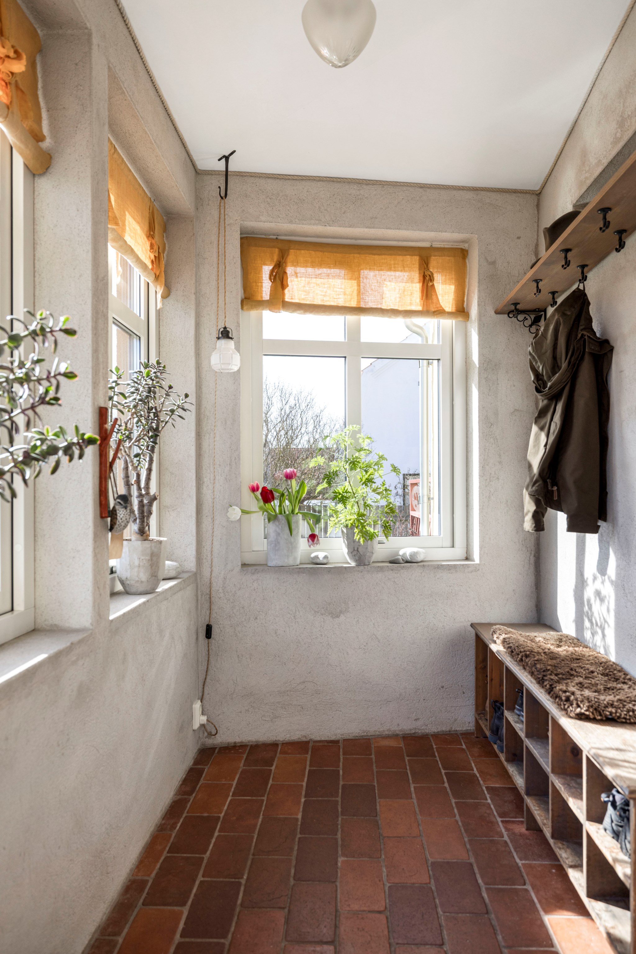 Golv: Klinker. Tvättmaskin, torktumlare och tvättho.