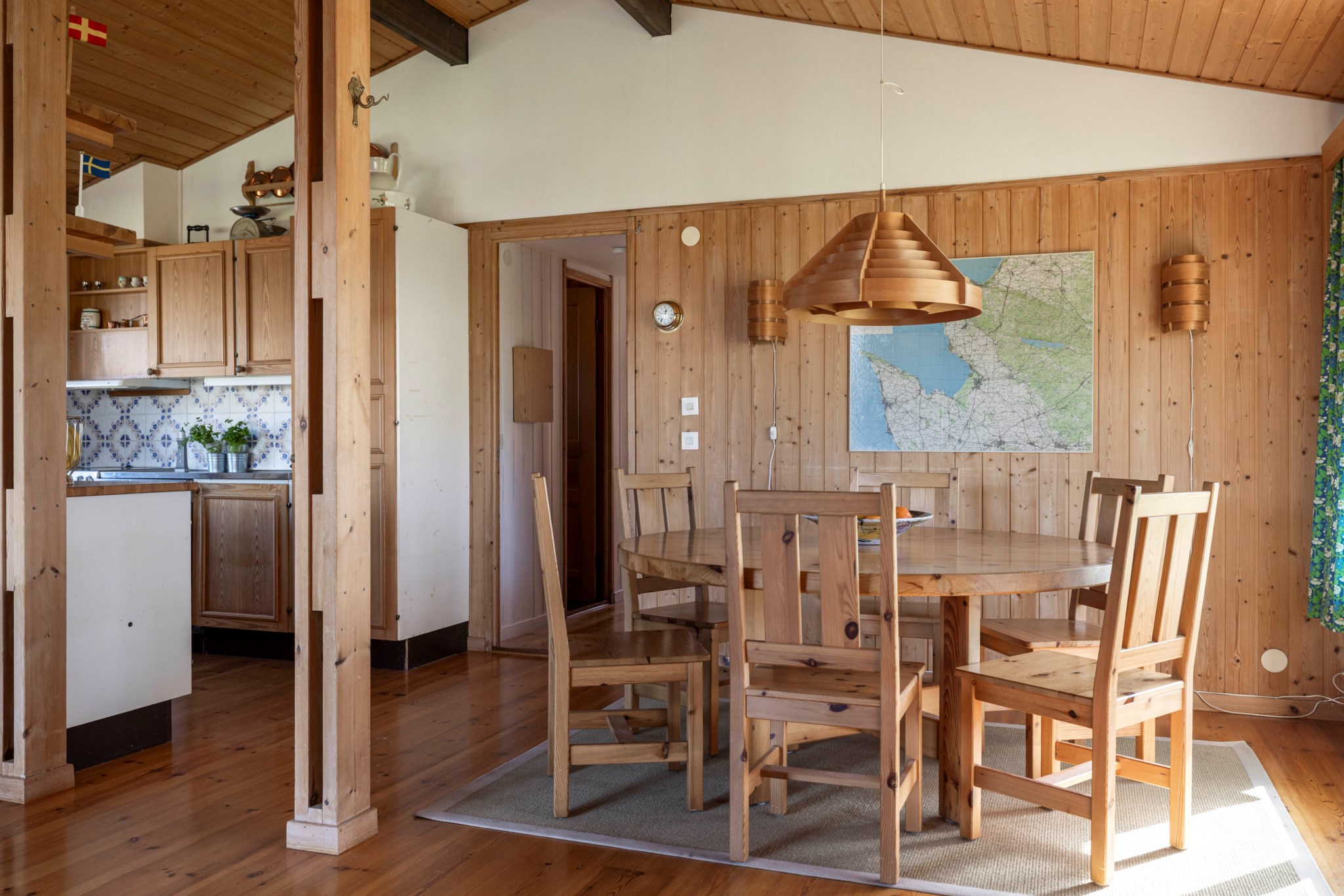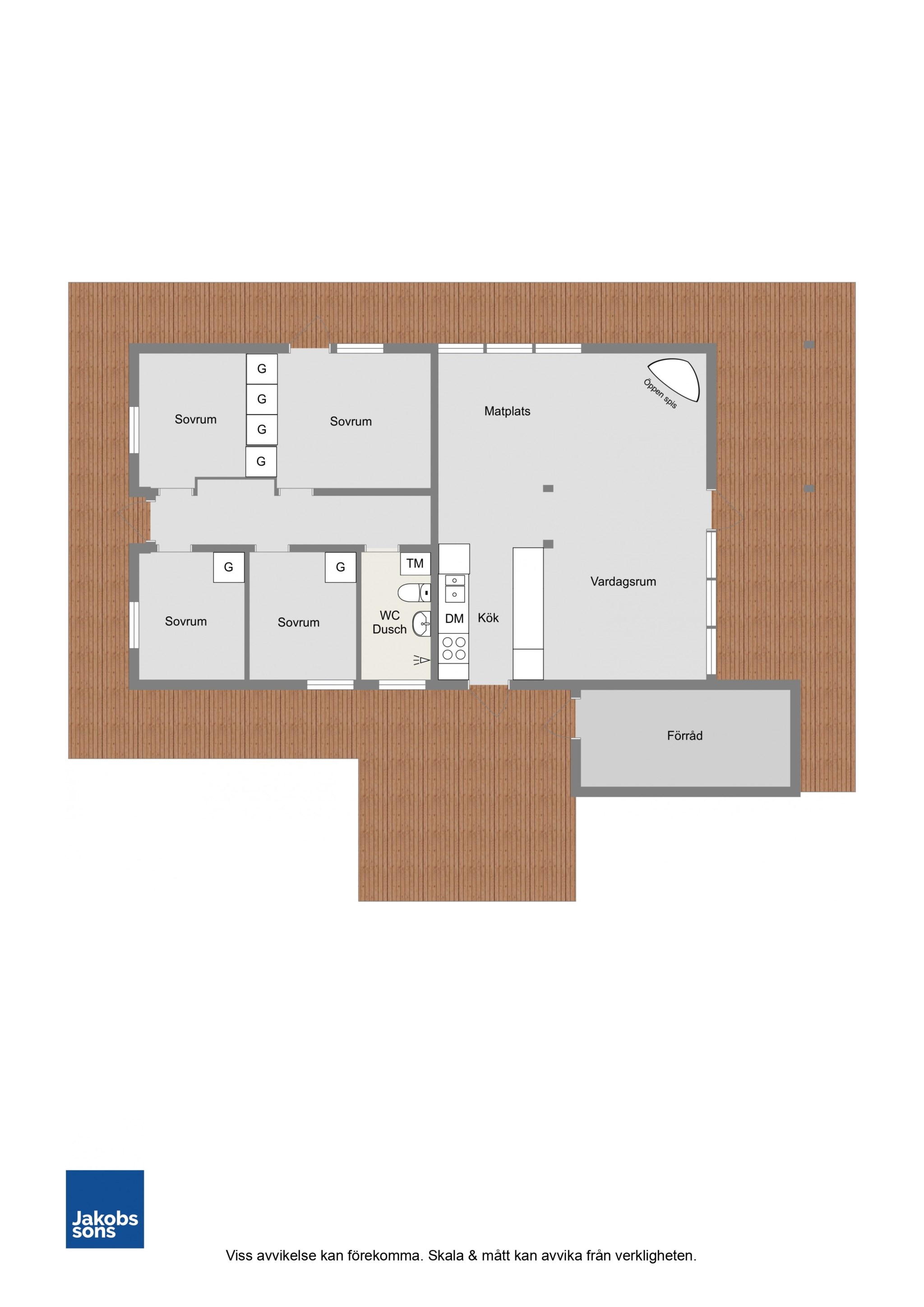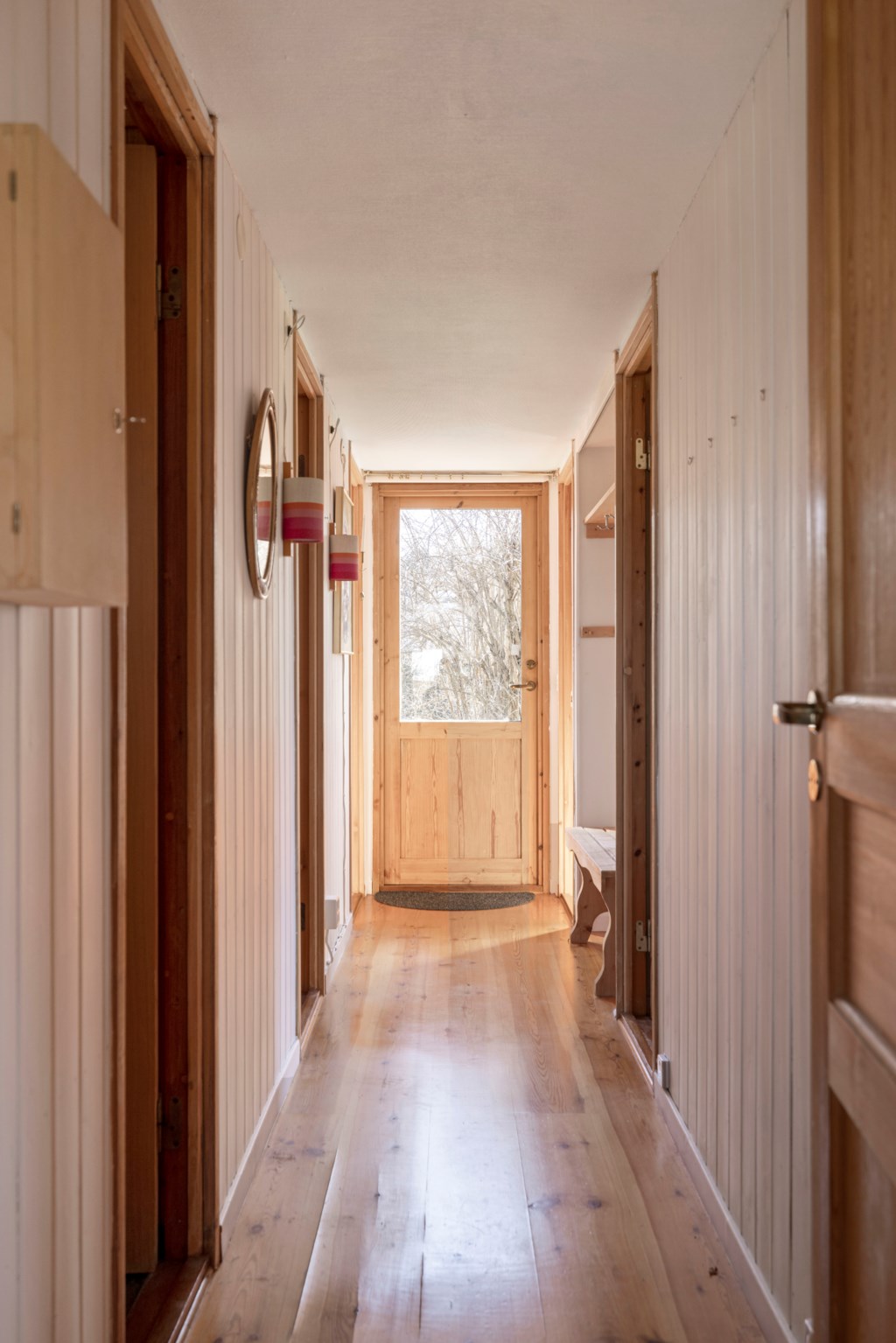 Entré sker in i en hall med plats för avhängning och förvaring. Härifrån nås bostadens mer privata del där flera sovrum är samlade tillsammans med badrum, vilket skapar en avskild och lugn sovrumsdel. Sovrummen ligger praktiskt placerade i anslutning till varandra och erbjuder flexibla möjligheter för familjens behov, såsom sovrum, barnrum eller arbetsrum. Vidare in i bostaden öppnar planlösningen upp mot de sociala ytorna där ett rymligt sällskapsrum med öppet upp i nock tar vid. Här finns gott om plats för både vardagsrum och matplats i en öppen och inbjudande miljö. Köket är placerat i direkt anslutning, vilket bidrar till en social och funktionell helhet. Från sällskapsrummet nås även bostadens altan som blir en naturlig förlängning av de sociala ytorna och skapar fina möjligheter till umgänge under årets varmare månader. Bostaden har en genomtänkt planlösning med tydlig uppdelning mellan privata och sociala ytor, vilket ger ett trivsamt och funktionellt hem.