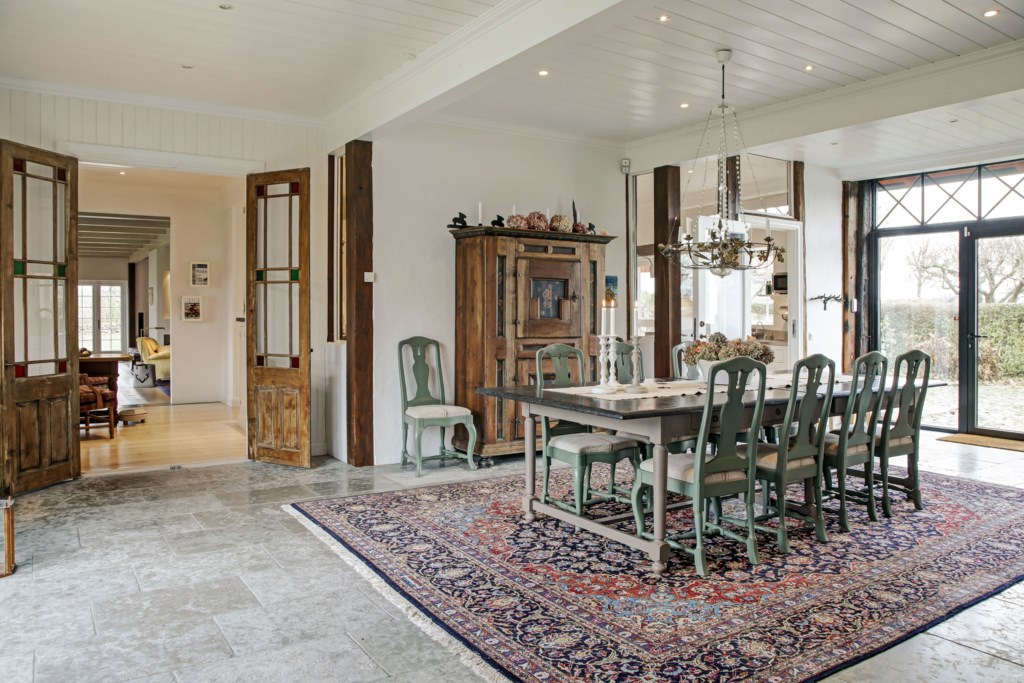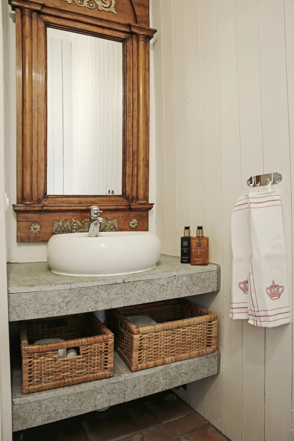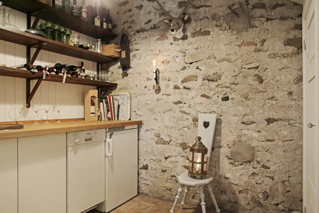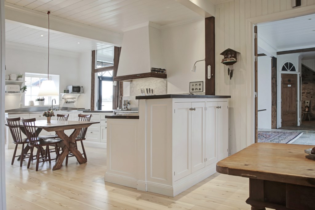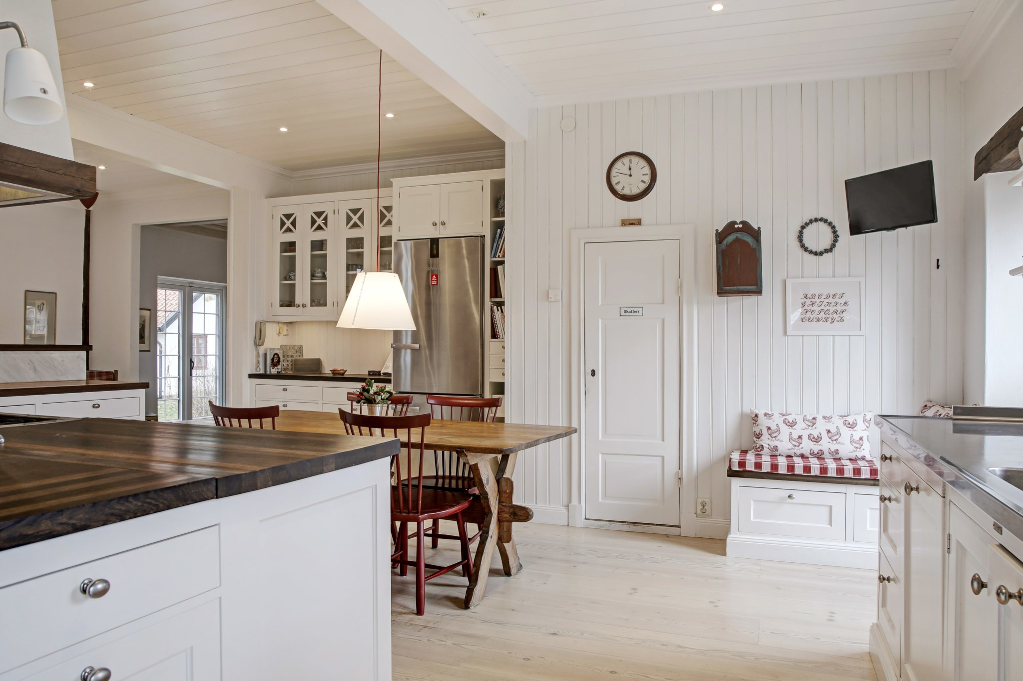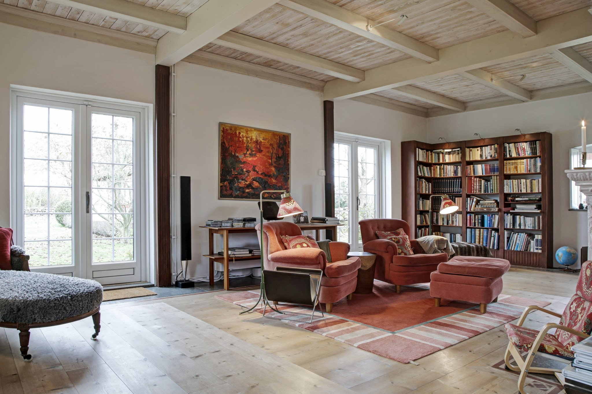 Bostaden är disponerad över två genomtänkta våningsplan och erbjuder en elegant kombination av generösa sällskapsytor, avskilda privata rum och exklusiva bekvämligheter. Planlösningen är utformad för att skapa ett hem som fungerar lika väl för representativa tillställningar som för det bekväma vardagslivet. Entréplanet välkomnar med ett storslaget allrum där rymd och ljus samspelar i en inbjudande atmosfär tillsammans med dubbla eldstäder. Här finns gott om plats för flera möbleringsgrupper och sociala sammanhang. I öppen och naturlig anslutning ligger det påkostade köket, utformat med köksö som hemmets självklara nav. Köket erbjuder generösa arbetsytor, god förvaring och en genomtänkt planering som bjuder in till både matlagning och umgänge. I anslutning finns ett praktiskt skafferi som förstärker kökets funktionalitet. Vidare nås en den vackra matsalen i det före detta vagnslidret med utrymme för större middagsbjudningar i en avskild och elegant miljö. Planet kompletteras av en tvättstuga utrustad med tvättmaskin och torktumlare. Här finns även ett separat apparatrum, en gästtoalett samt ett vinrum som bidrar till bostadens genomgående karaktär.