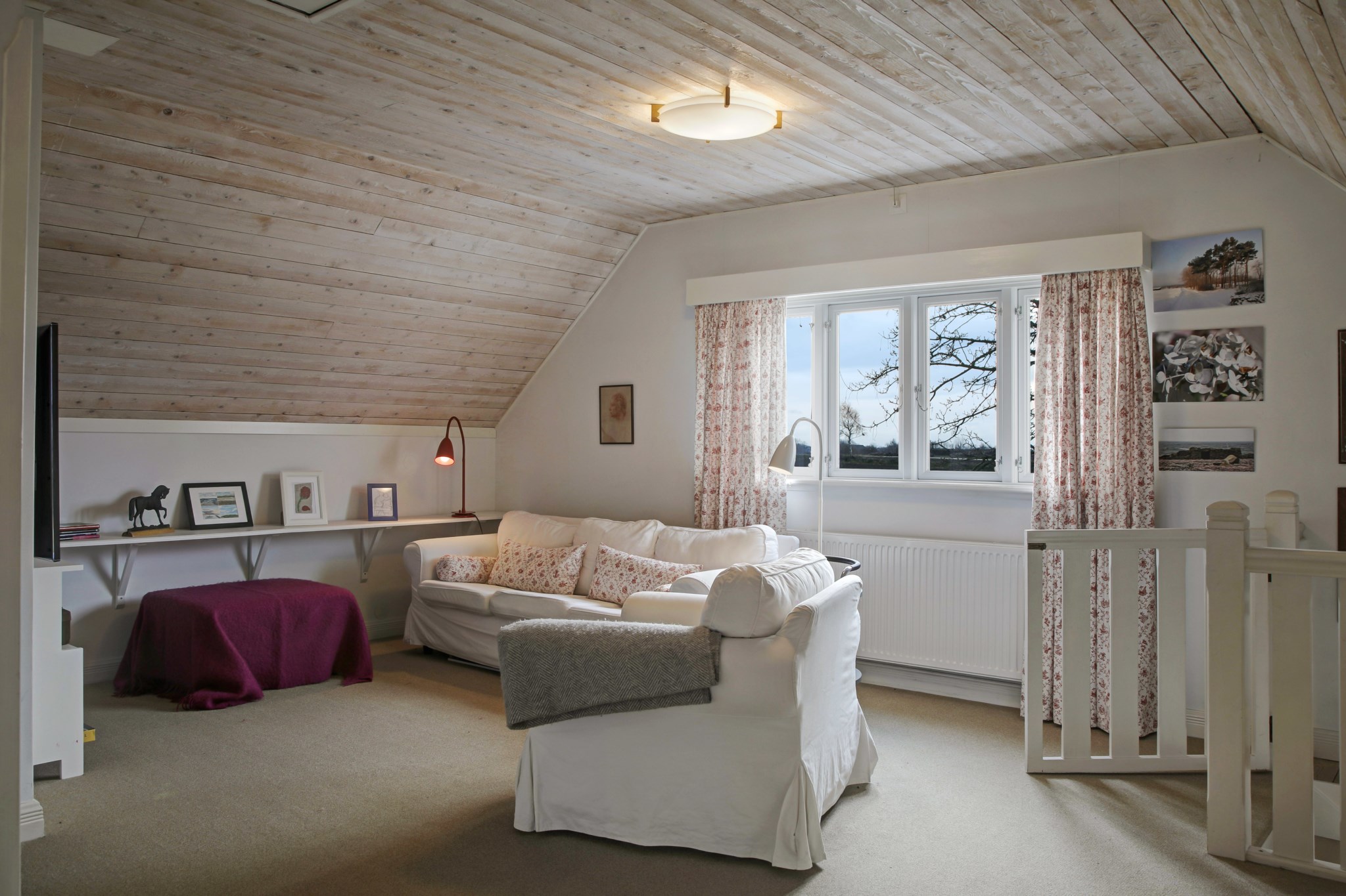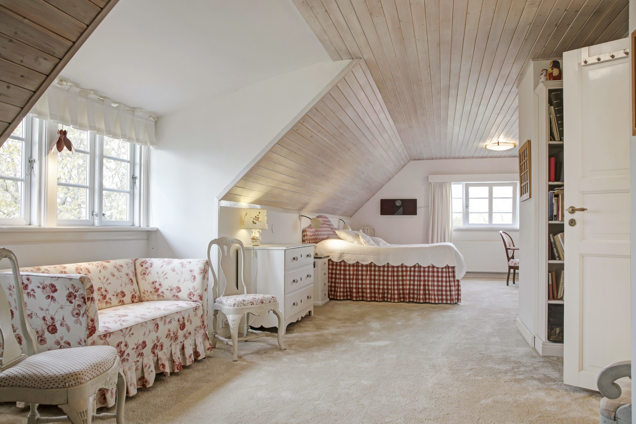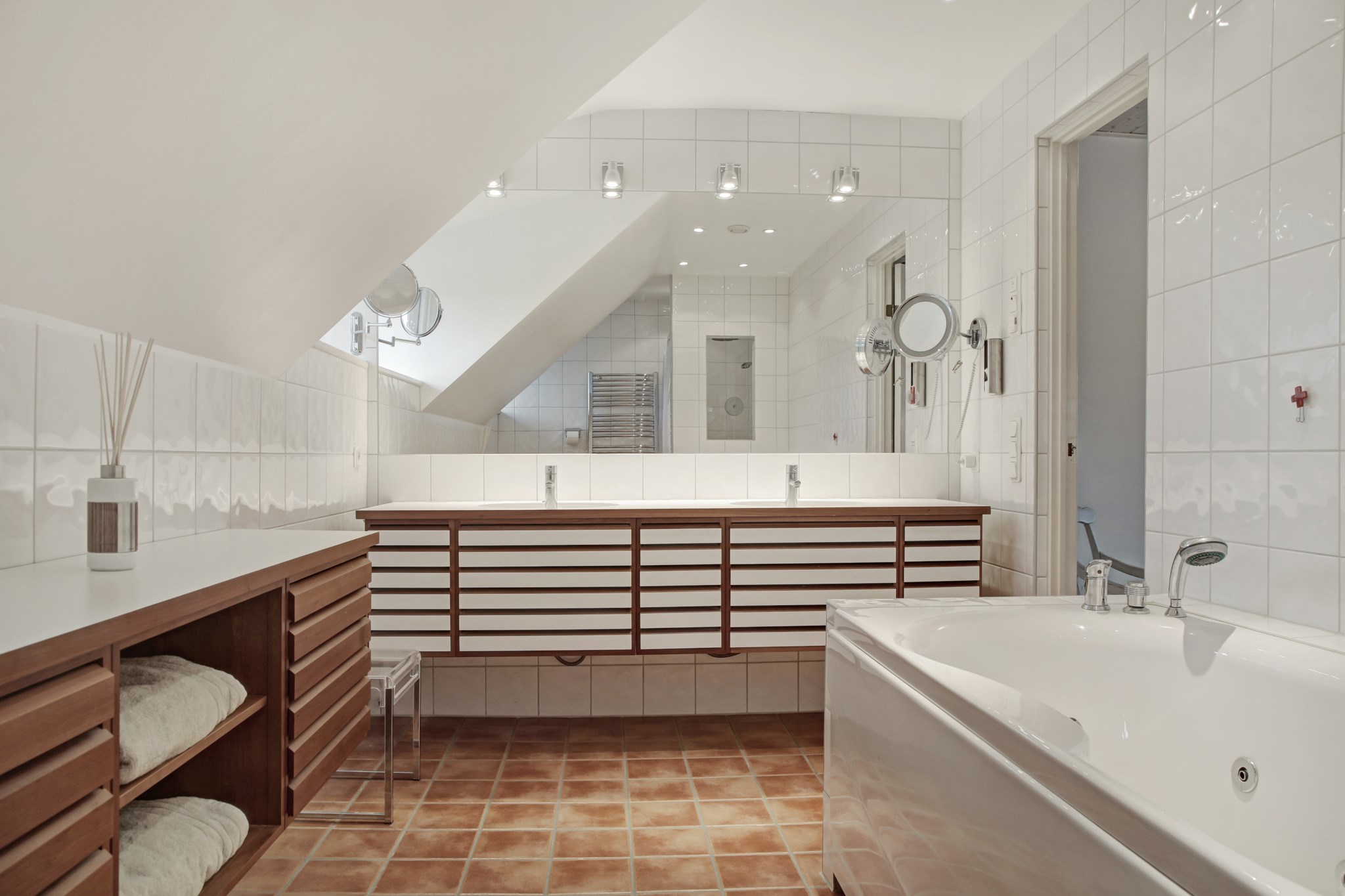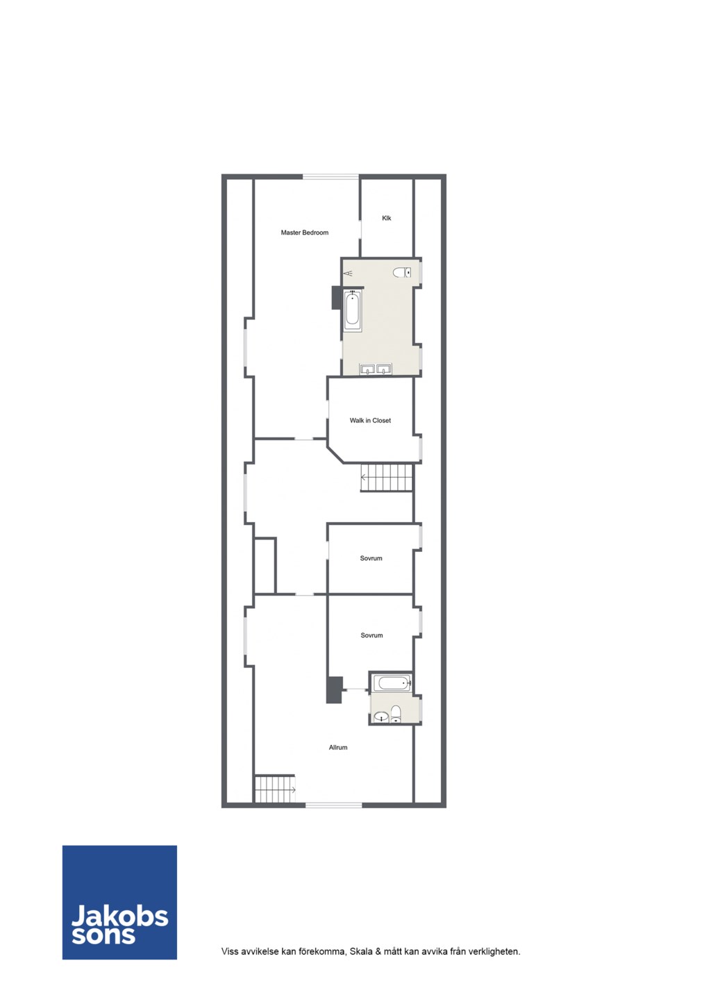 Övre plan utgör bostadens privata sfär. Master bedroom är generöst tilltaget och erbjuder en lugn och avkopplande atmosfär. I direkt anslutning finns en rymlig walk-in closet, ytterligare klädkammare samt ett elegant badrum med badkar, dusch, toalett och dubbla handfat, utformat för högsta komfort. Här återfinns även två välplanerade sovrum med goda ljusinsläpp och flexibla möbleringsmöjligheter. Ett centralt placerat allrum skapar en naturlig samlingspunkt och lämpar sig väl som tv-rum, lounge eller bibliotek. Planet disponerar dessutom ytterligare ett stilrent badrum med badkar, toalett och handfat, vilket ger hög funktionalitet och bekvämlighet. Sammanfattningsvis erbjuds ett hem med genomgående generösa ytor, flera sällskapsrum, utmärkta förvaringslösningar och exklusiva detaljer som skapar ett boende utöver det vanliga – ett hem att trivas i under lång tid framöver.