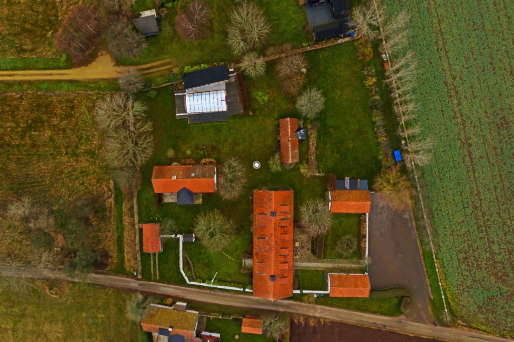 Två fristående, isolerade garagebyggnader med elektriska portar och luft/luftvärmepumpar, utformade i samma tilltalande stil som övriga byggnader. Den grusade uppfarten erbjuder gott om parkeringsyta, och därutöver finns även en äldre garagebyggnad.Övriga byggnader