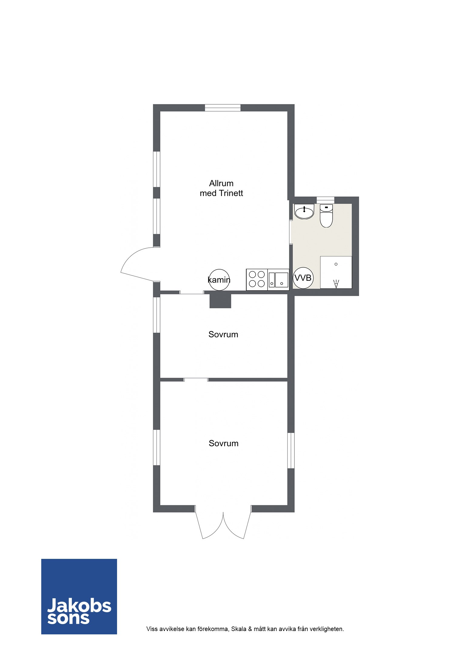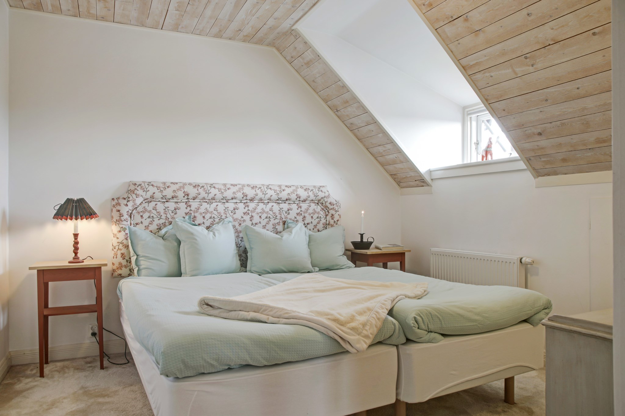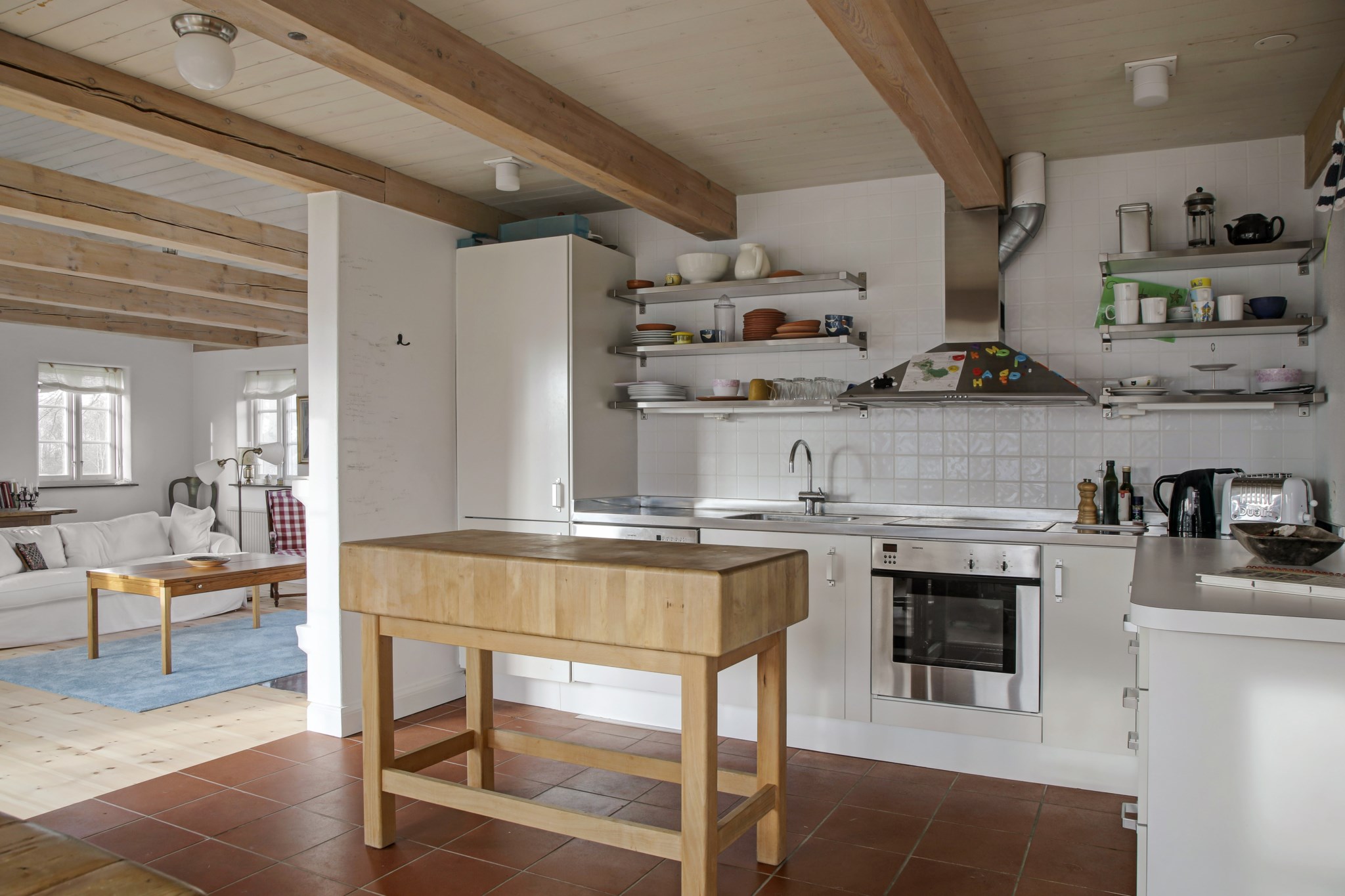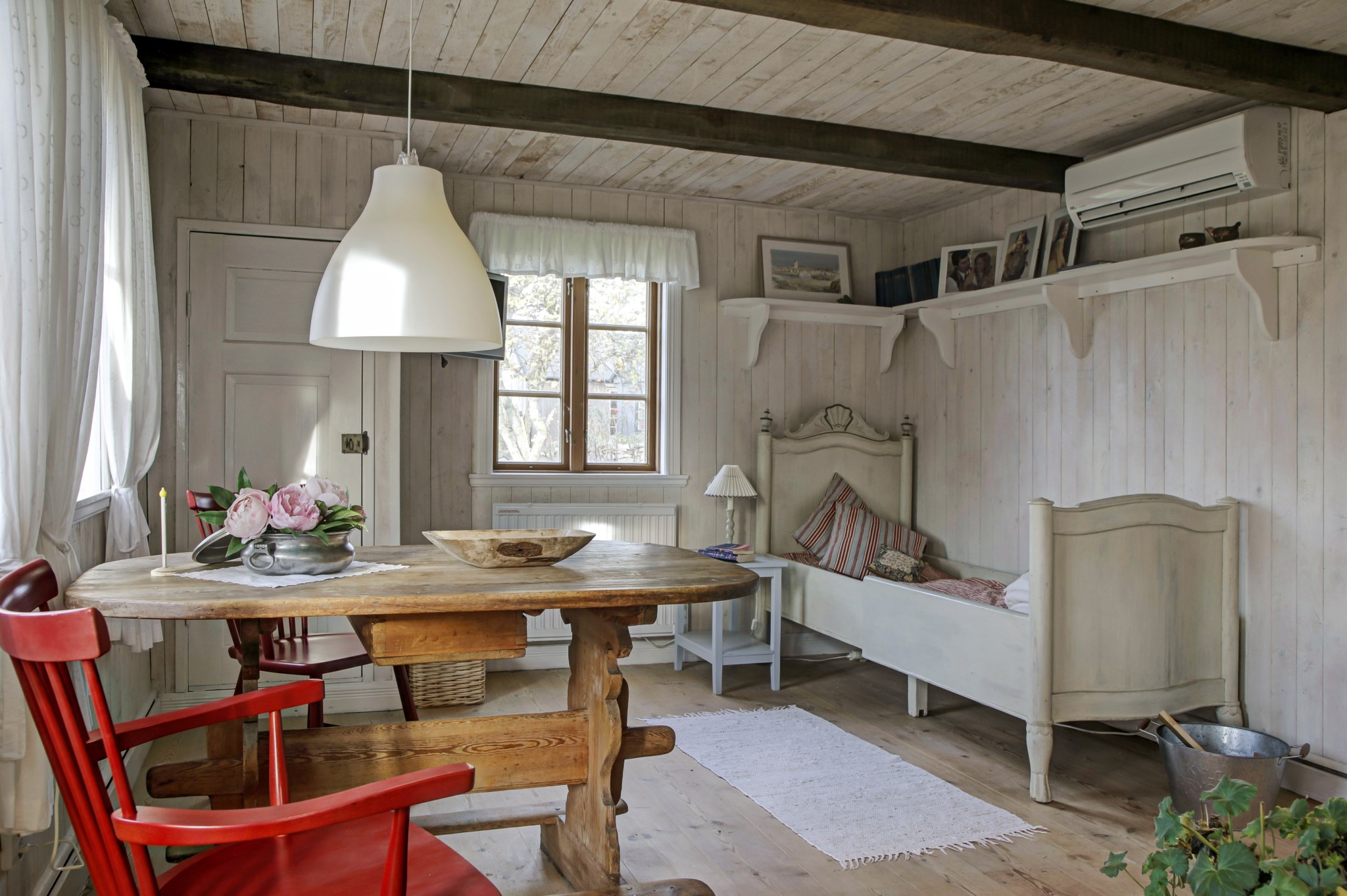 Detta smakfulla gästhus erbjuder ett välplanerat boende med ljusa ytor och genomtänkt funktion. Allrummet med trinett utgör husets naturliga samlingspunkt och förstärks av en stämningsfull kamin som skapar både värme och karaktär. Vidare finns två rofyllda sovrum varav det ena med fast våningssäng och det andra med vikdörrar ut mot trädgården. Det helkaklade badrummet är stilrent utformat och utrustat med dusch, toalett och handfat.