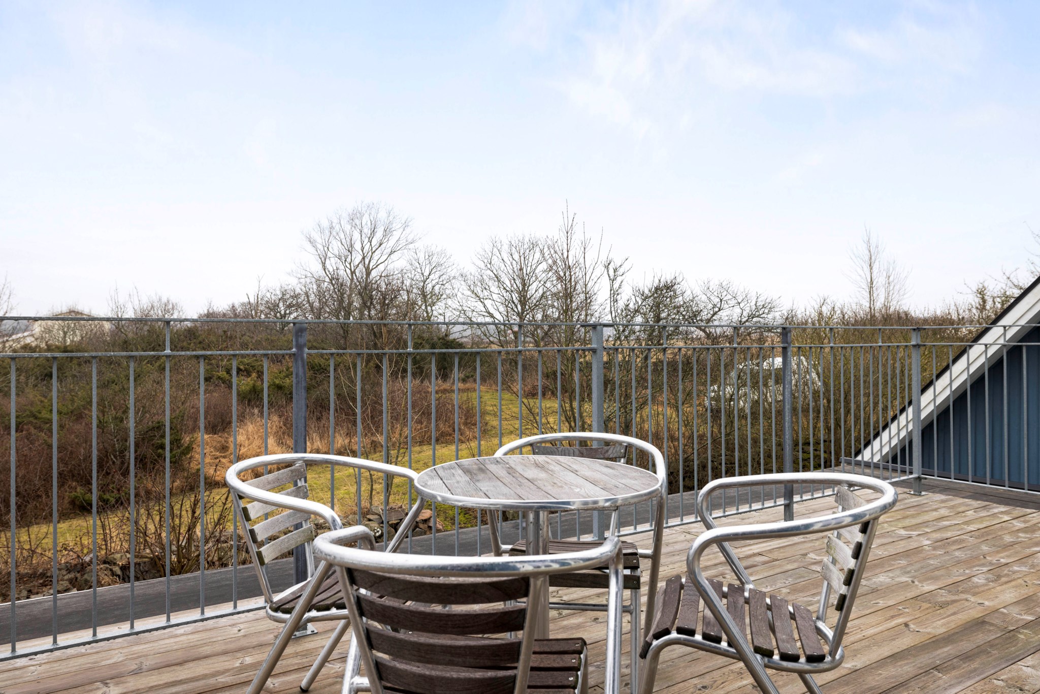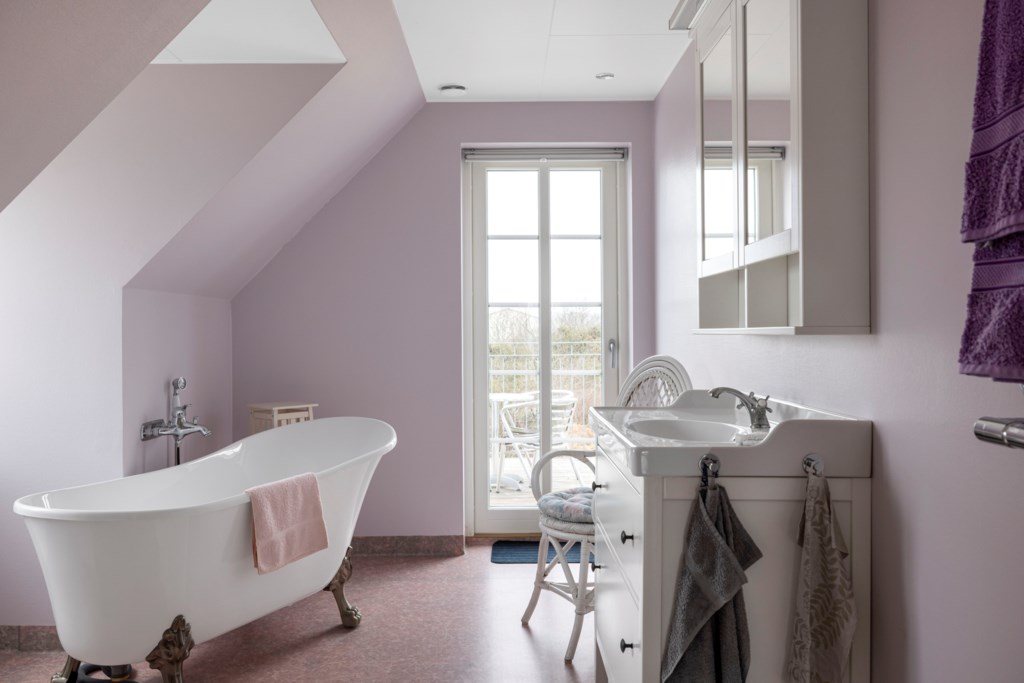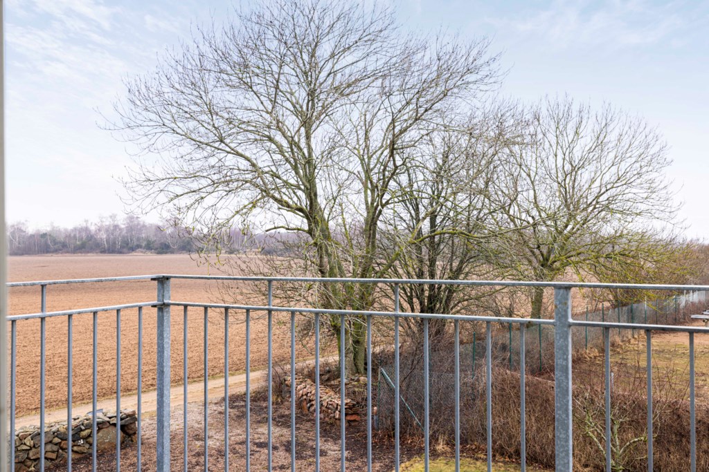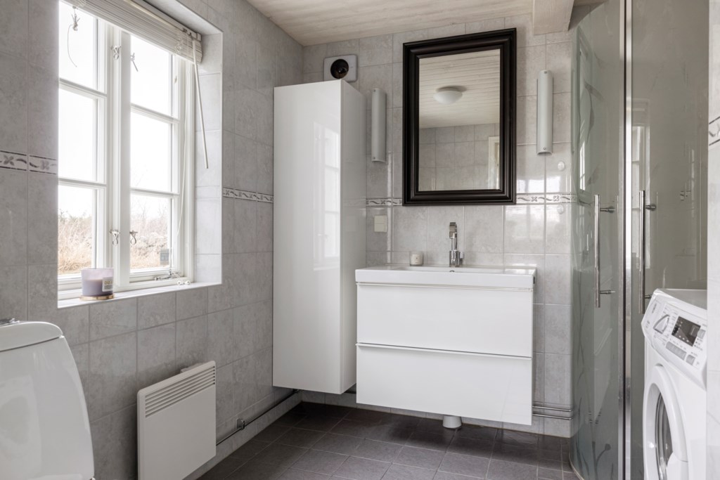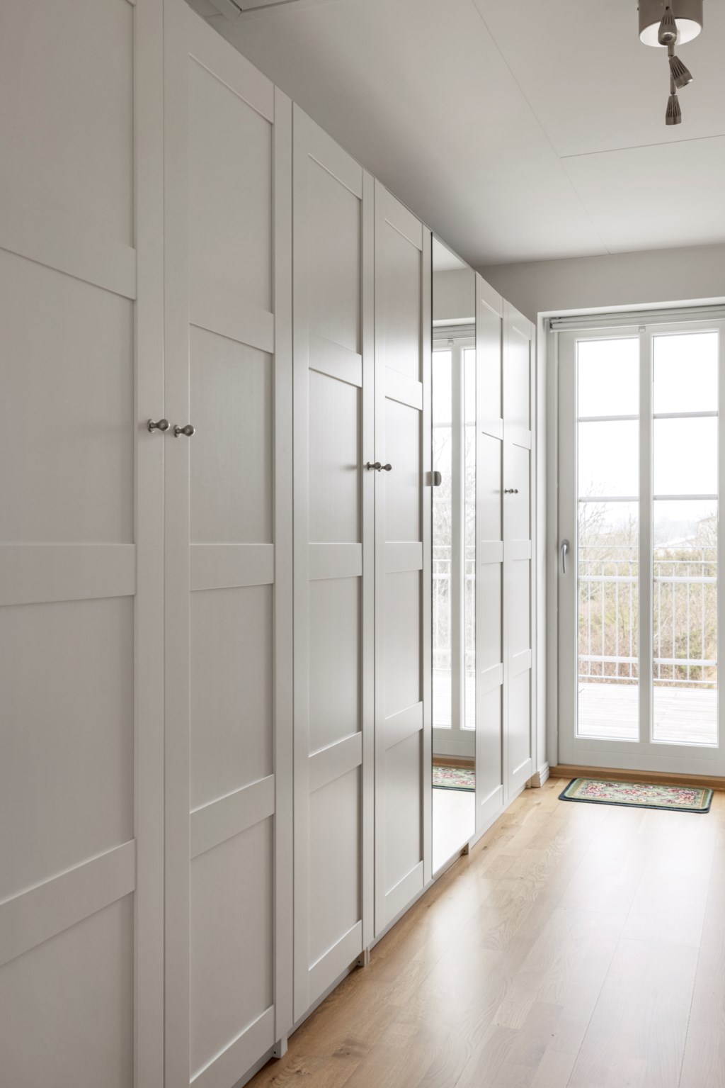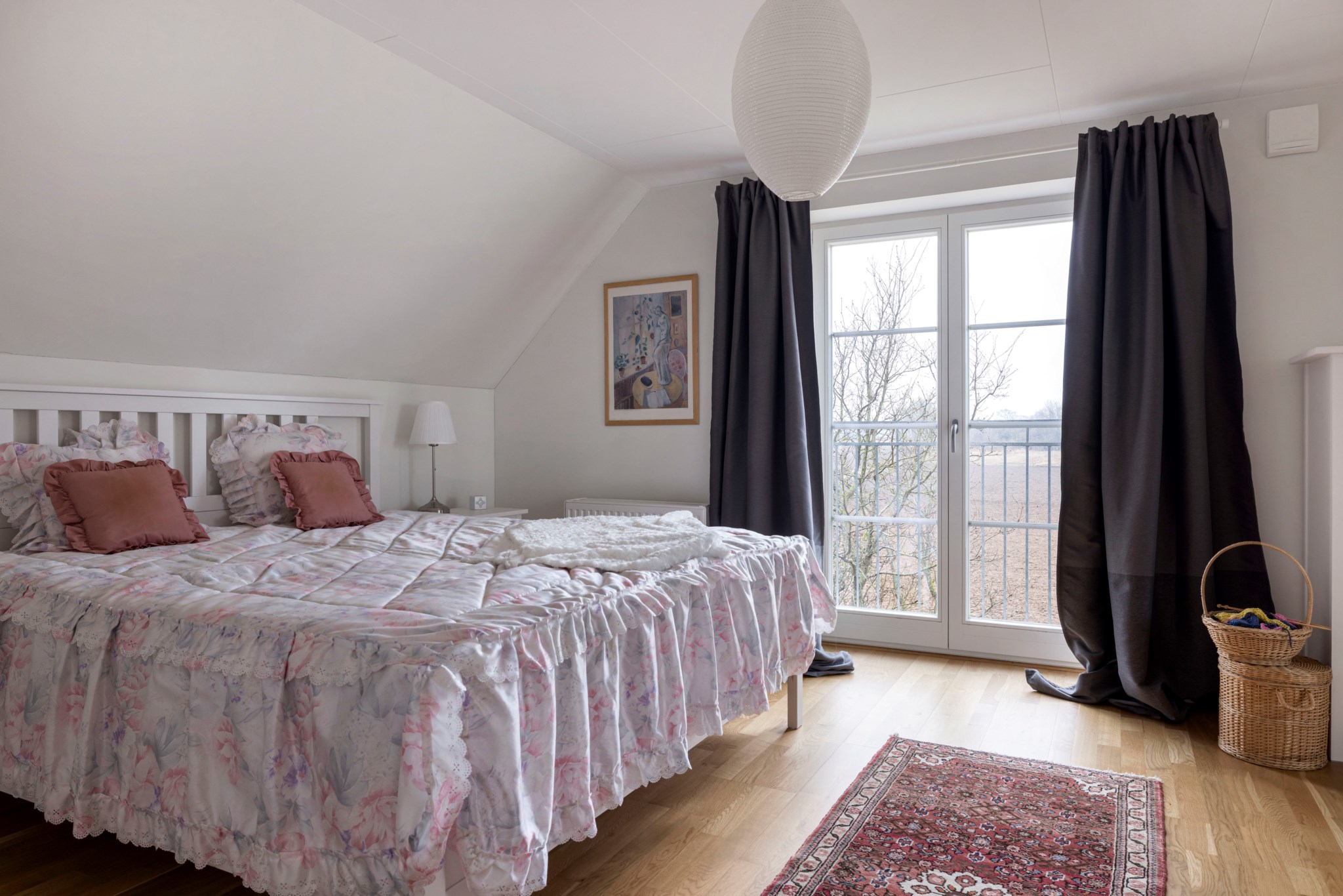 Ovanvåningen nås via entrén och bjuder på ytterligare sociala och privata ytor. Ett mysigt allrum med utgång till balkong ger en fantastisk utblick ner över Torekov och havet. Här njuter du av sommarens vackra solnedgångar i en rogivande miljö. På ena gaveln finns ett stort sovrum med fransk balkong. I den andra delen av våningsplanet ligger ytterligare ett sovrum samt ett badrum med badkar. Båda dessa rum har utgång till en härlig terrass med vidsträckt vy över havet – en privat oas där du kan starta dagen med havsbris och avsluta den under kvällshimlens skiftande färger.