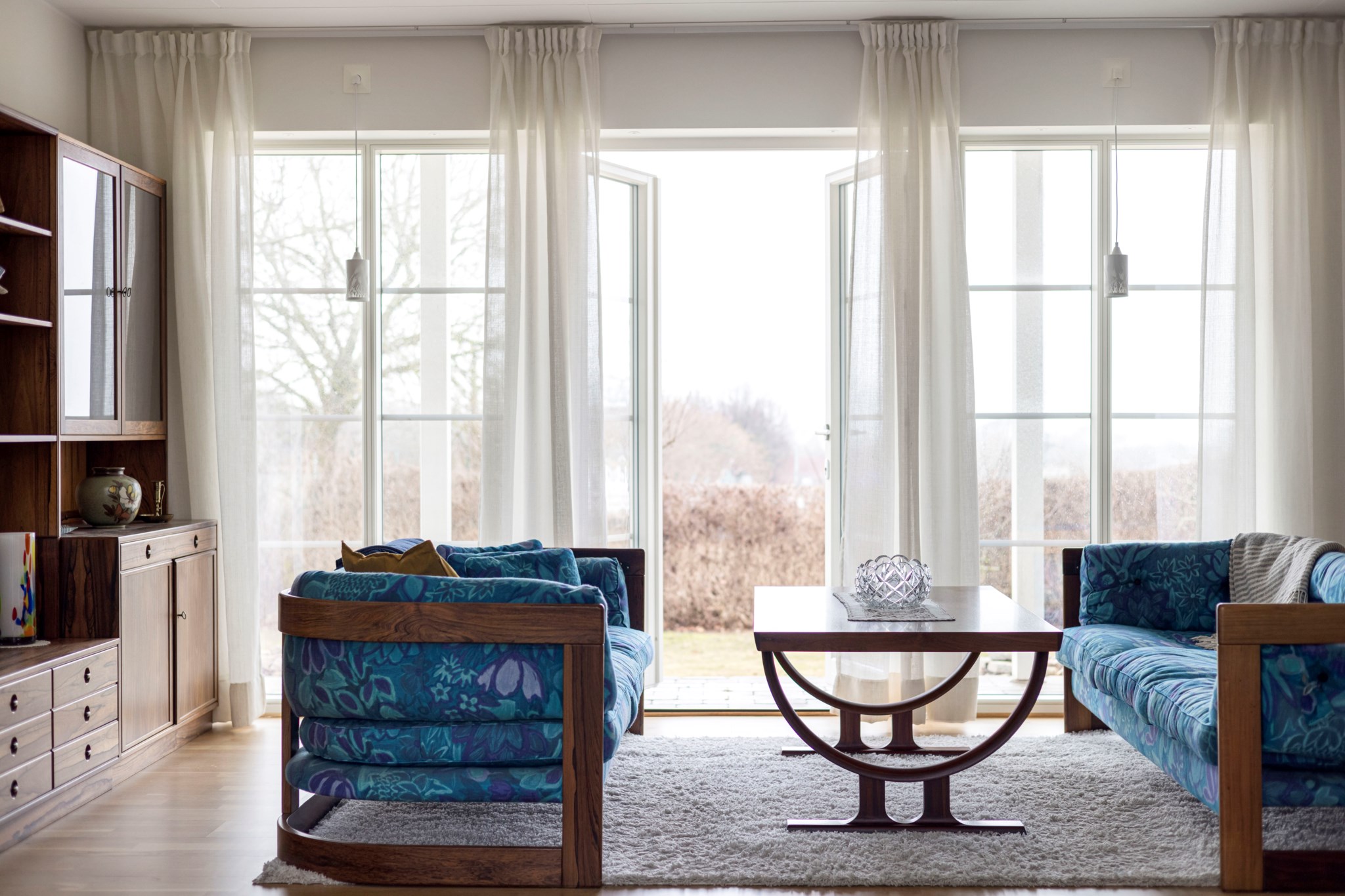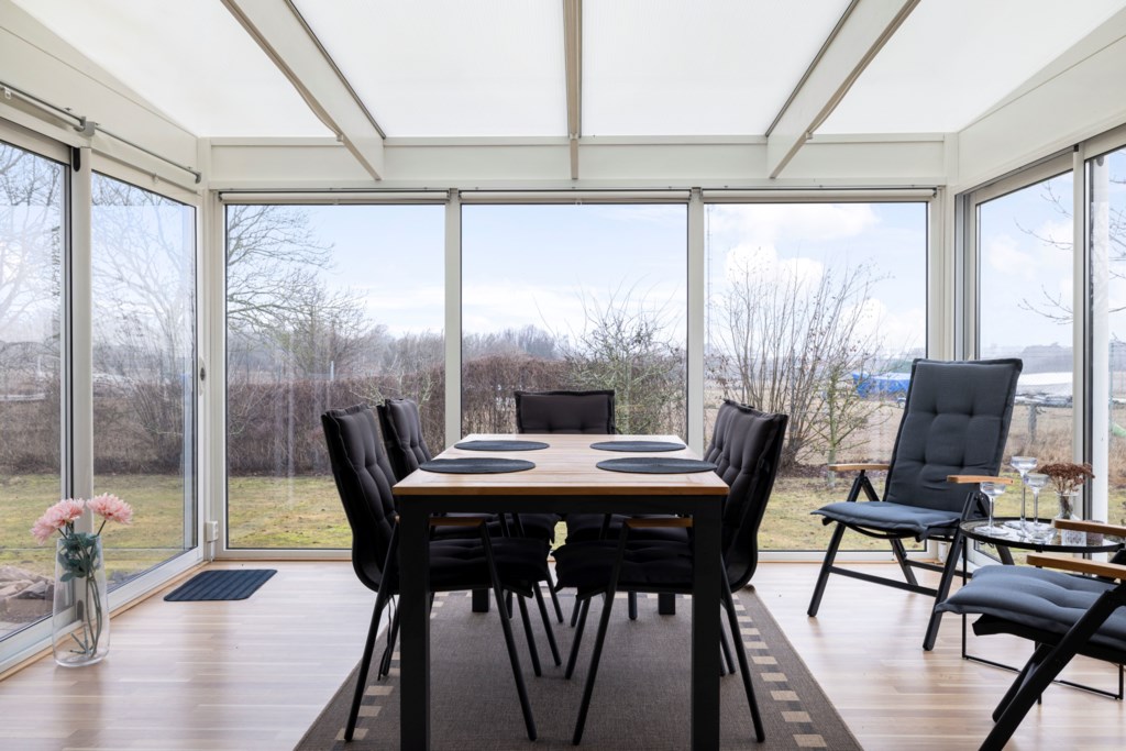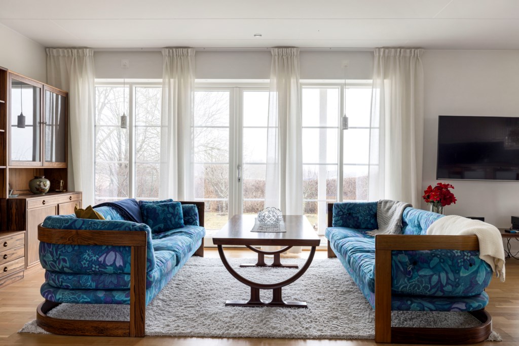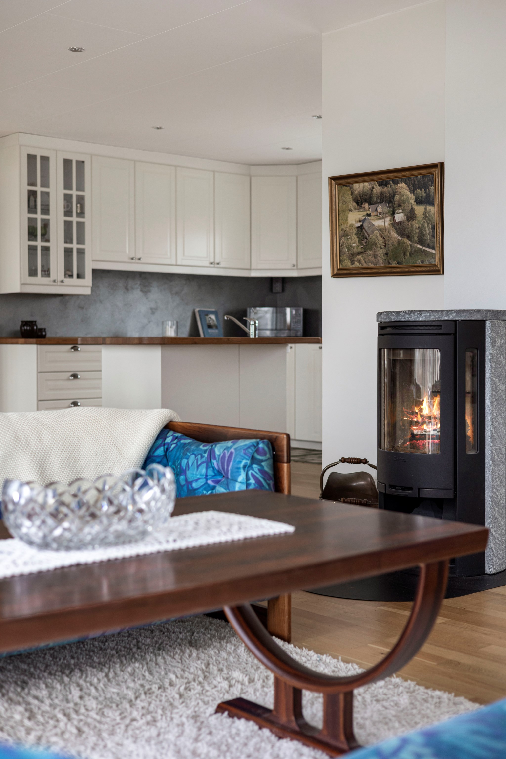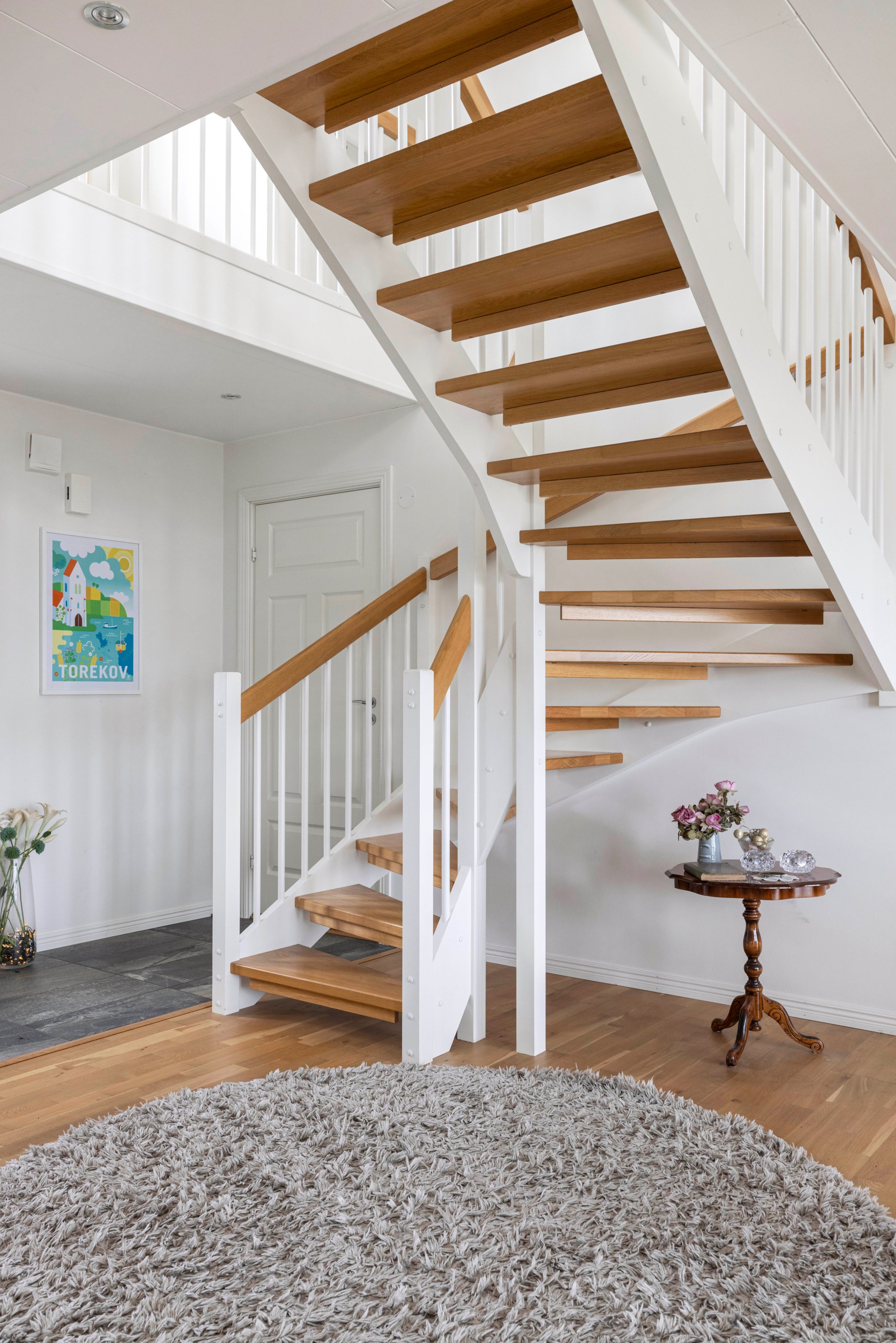 Redan i den välkomnande entrén möts du av en ljus och inbjudande hall med goda förvaringsmöjligheter och behaglig vattenburen golvvärme som löper över hela bottenplanet. Härifrån öppnar bostaden upp sig mot ett härligt allrum och kök i öppen planlösning. Det stora fönsterpartiet ger ett fantastiskt ljusinsläpp och skapar en fin kontakt med utemiljön, samtidigt som du når terrassen direkt från rummet. Den värmande kaminen blir en naturlig samlingspunkt och bidrar med både atmosfär och komfort. I anslutning till entrén finns ett rogivande sovrum samt ett välutrustat, helkaklat badrum i ljus interiör. Här finns även en praktisk tvättdel med tvättmaskin, torktumlare och torkskåp samt generösa förvaringslösningar som förenklar vardagen. Köket är smakfullt inrett i vitt med stilrena ekbänkskivor och rostfria vitvaror. Den centralt placerade köksön erbjuder både arbetsyta och social samvaro. Planlösningen är öppen mot allrummet, med gott om plats för såväl matbord som soffgrupp – en perfekt yta för både vardagsliv och festliga tillställningar. Vidare nås ett elegant sällskapsrum med plats för matsalsmöblemang och utgång till ett generöst uterum, även detta med golvvärme. Härifrån kliver du vidare ut till den stenbelagda uteplatsen – en skyddad och trivsam miljö för långa middagar och avkopplande stunder.