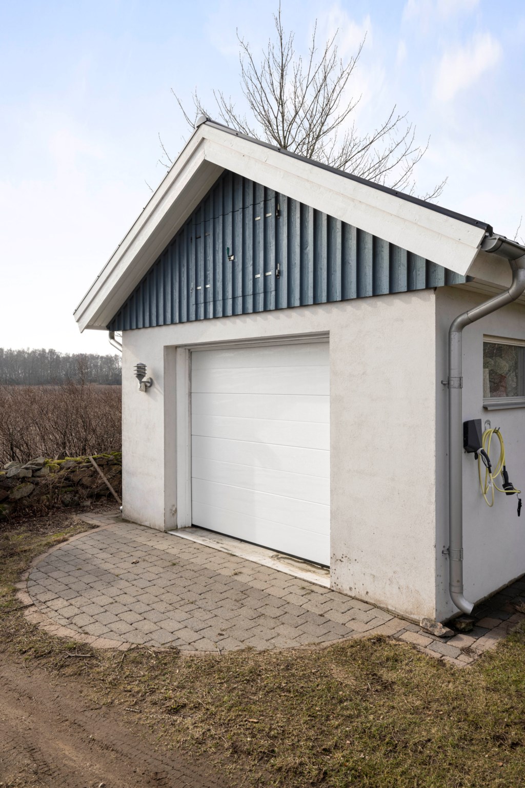 Isolerat garage med automatisk port, laddbox och förrådsdel. V/A finns, förberett för att bygga bastu.TV- och internetanslutning