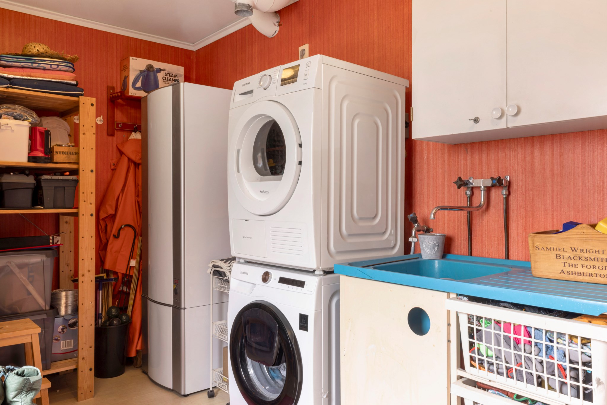 Utrustning: Tvättmaskin, torktumlare och tvättställ.