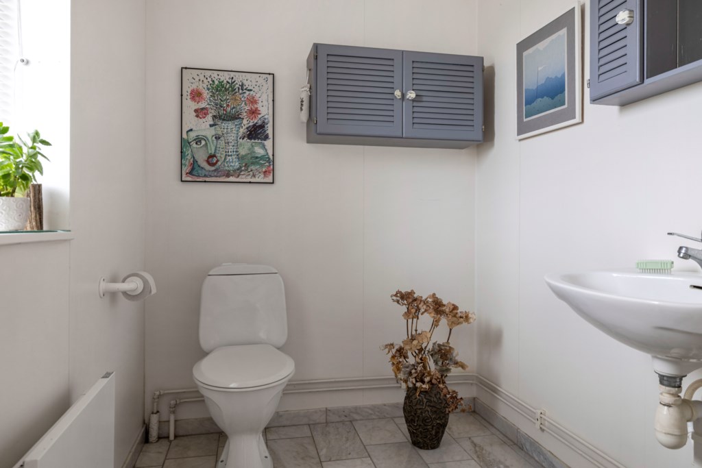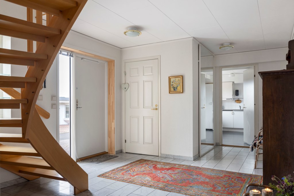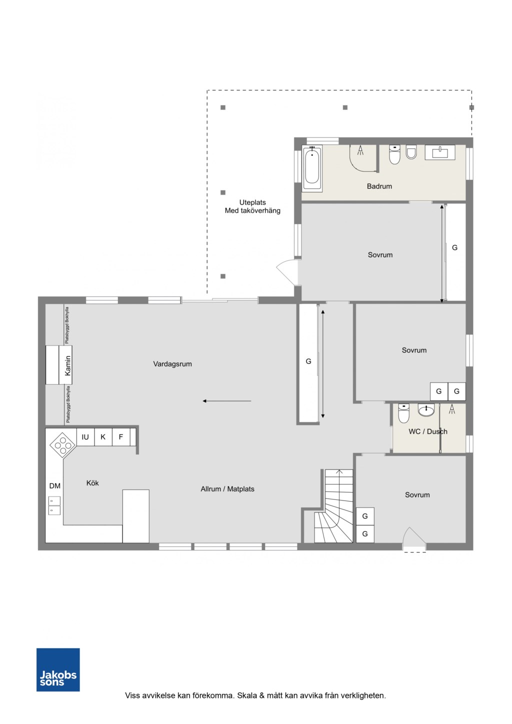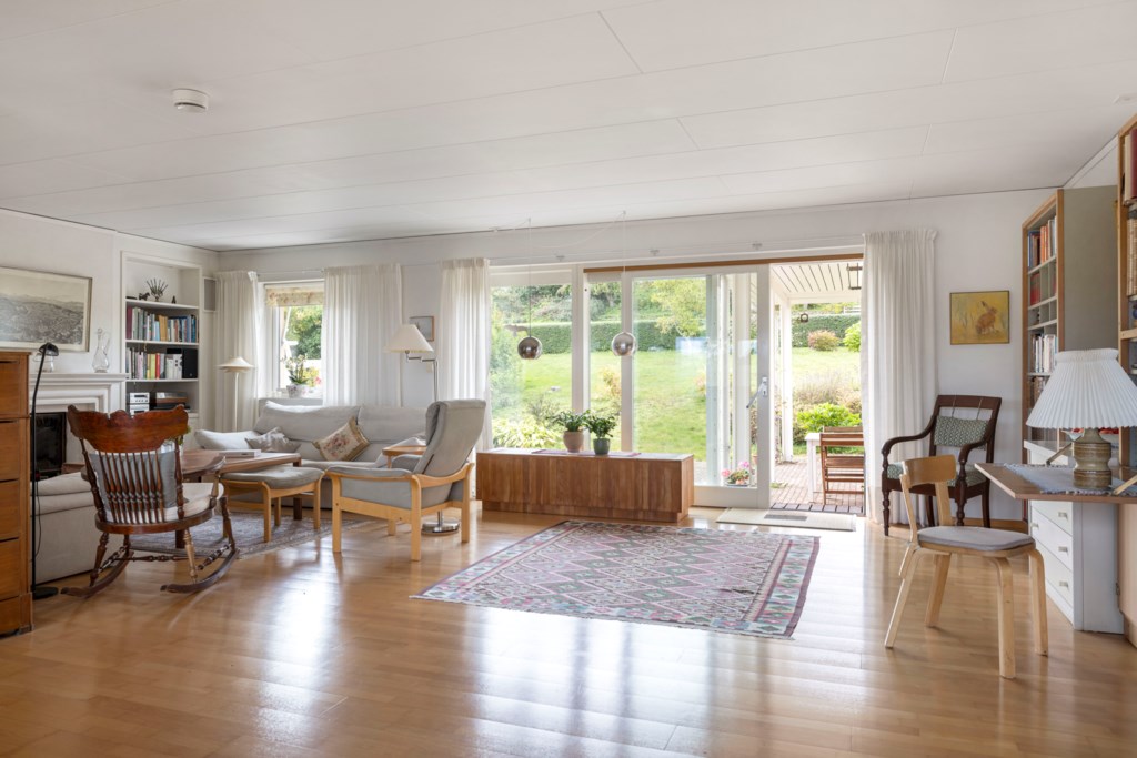 I den avskilda sovrumsdelen finns tre rymliga sovrum, varav ett med direkt utgång till uteplatsen. Här finns även två badrum, vilket ger god funktionalitet för både familj och gäster samt generöst med förvaringsmöjligheter.