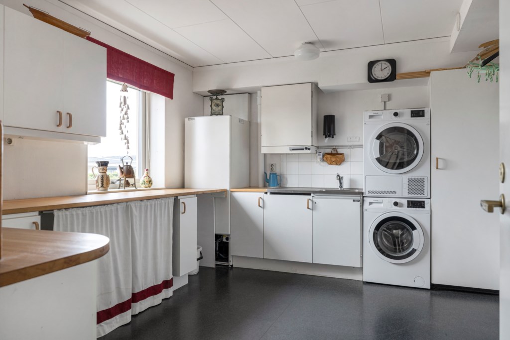 Utrustning: Tvättmaskin, torktumlare och tvättställ.