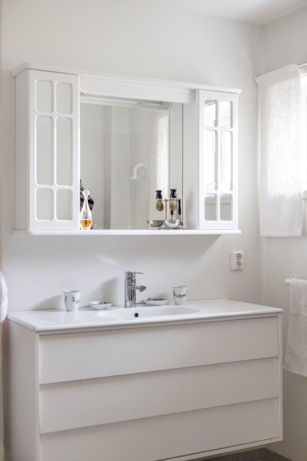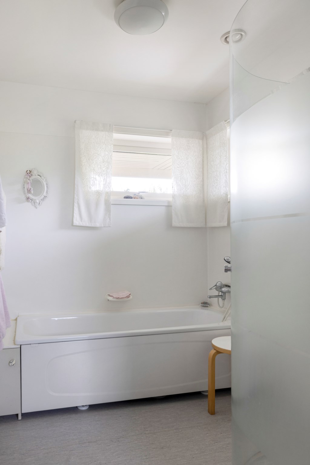 Våtrumstapet och plastmatta. Utrustning: Dusch, badkar, toalett, bidé, tvättställ och handdukstork.